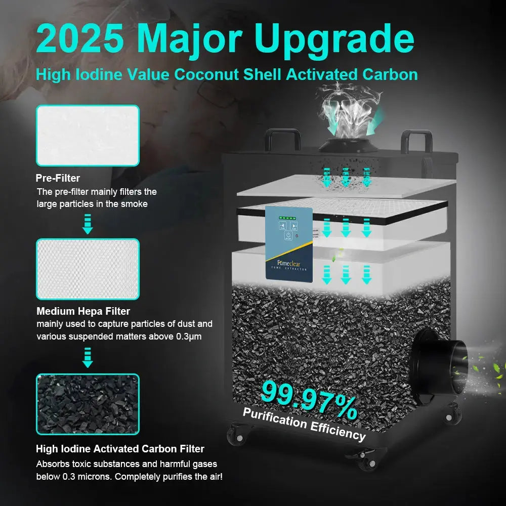 Equipped with Fumeclear’s newest filter set, delivering over 5,000 hours of use—up to 2× longer lifespan, helping you save at least $200 per year on replacements.