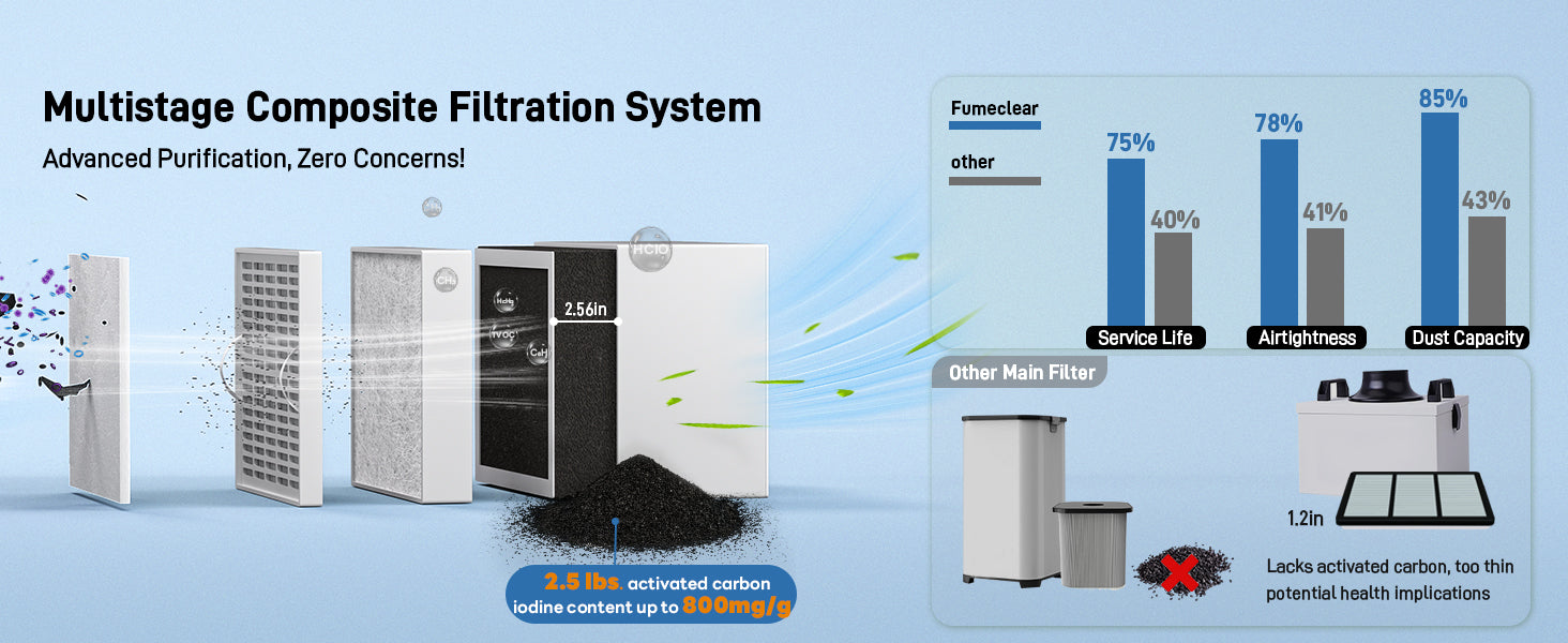 It's not enough to just catch the air—the filters must also clean it. A good fume extractor should use multi-layer filters (pre-filter, HEPA, activated carbon) to remove both particles and gases with high efficiency.