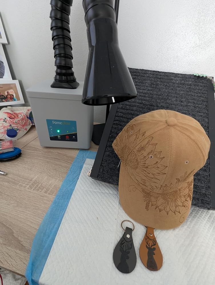 This is a nice sturdy machine compact and does the job. The hose and intake are able to be positioned far enough above my work while burning hats to remove any smoke and odor residue. It is also fairly quiet. This is a great machine I highly recommend.