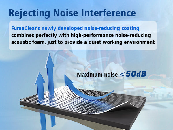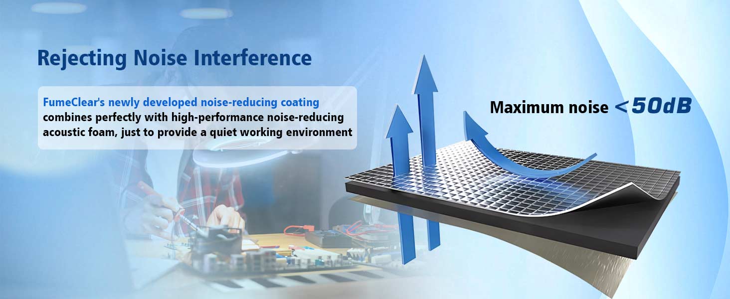 The FC-2001A fume extractor for soldering features a noise-reduction and leak-proof design. The cover of the FC-2001A is equipped with high-density sealing foam, which effectively absorbs noise generated by the motor, significantly lowering the noise level. Additionally, this foam creates a tight seal that prevents smoke from escaping once it is drawn into the machine.
