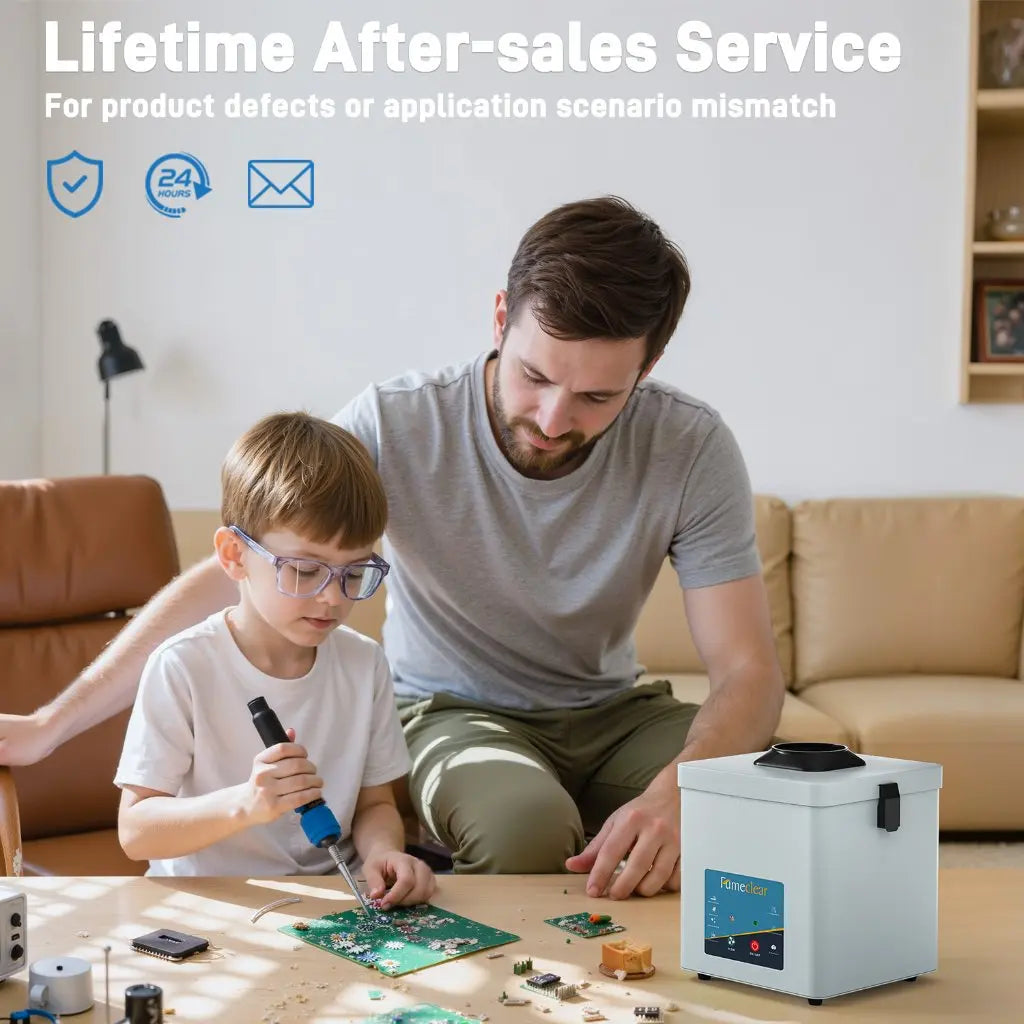 The Fumeclear FC-2001A is ideal for electronics soldering, providing efficient fume extraction. Please note, it is not suitable for laser machines. For those needing a fume extractor for both soldering and laser engraving, consider our Fume Extractor for Laser Engraver series.