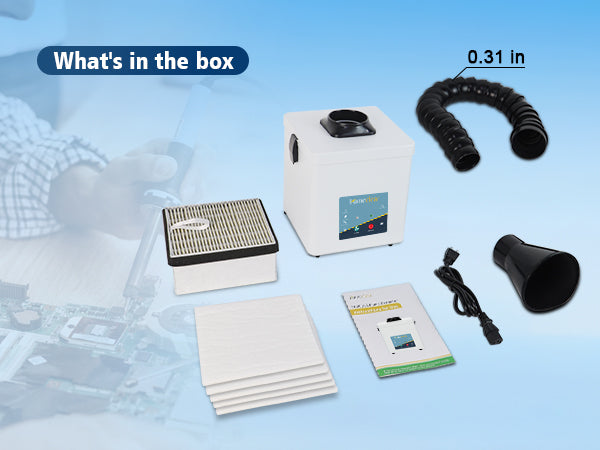 I purchased this for my 3D printing and hobby room so that when I work on soldering projects the fumes are reduced to acceptable levels. The unit is the perefect size for my work bench and works as advertised.