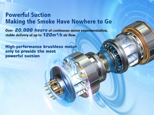The FC-2001A fume extractor for soldering features a brushless motor that eliminates mechanical loss, delivering enhanced suction power and stable performance for a longer service life. Weighing just 6.6 lbs and measuring 11.8 x 10.37 x 12.8 inches, this compact fume extractor is highly portable, making it ideal for small workspaces.