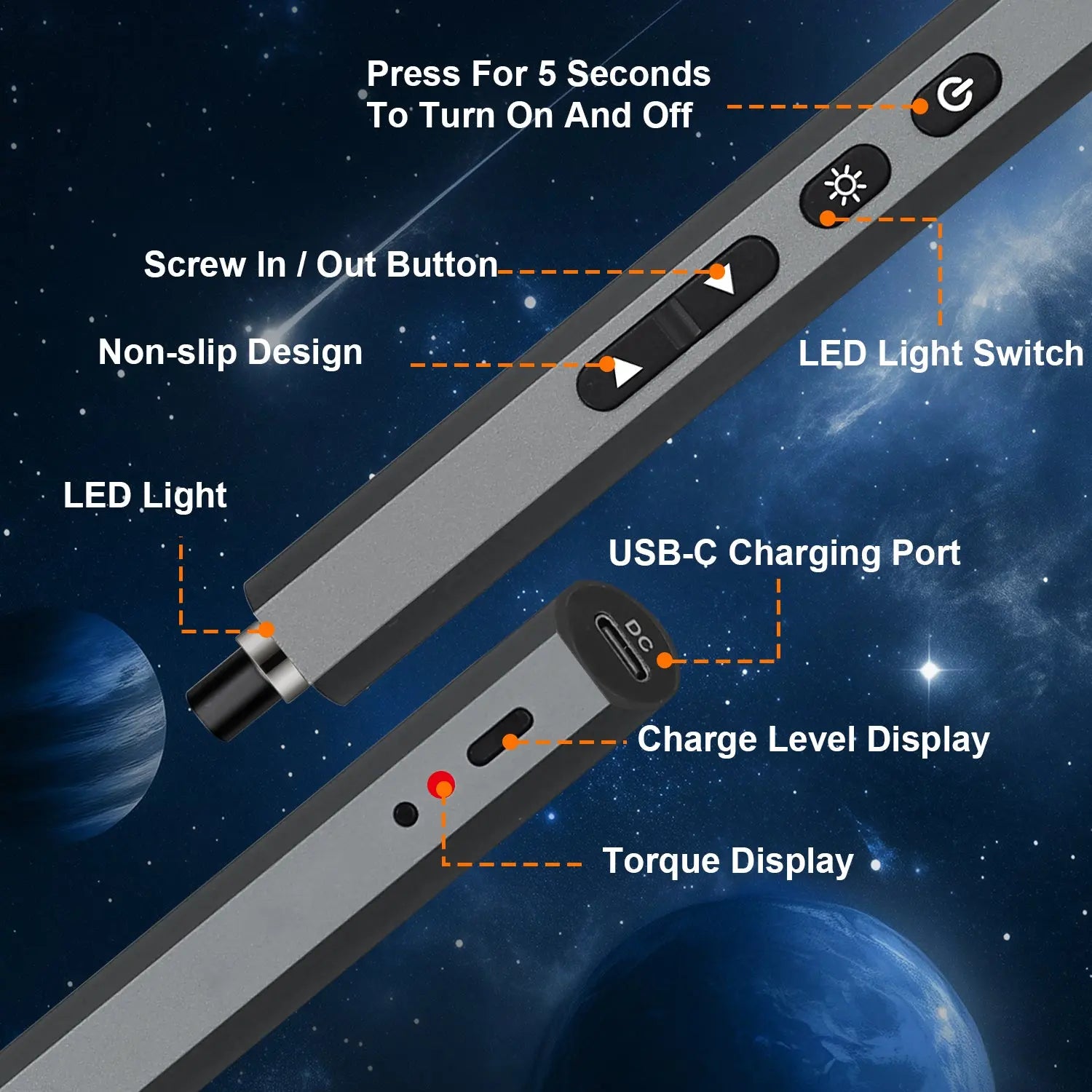 - •Precision Torque: Three adjustable torque levels, including 3 N·m manual torque and dual electric modes (0.15 N·m low, 0.3 N·m high)